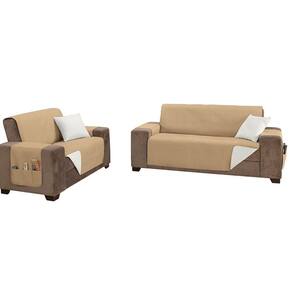 Protetor De Sofá Impermeável Dupla Face 2 E 3 Lugares Microfibra - Caqui-palha