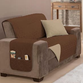 Para determinar a largura do assento de cada sofá, meça-o de um braço ao outro, excluindo os próprios braços. Essa medida deve ser aproximada à largura do assento das capas. Os braços são costurados junto às capas, e os bolsos ficam disponíveis em um dos braços de cada protetor, variando entre o lado direito e esquerdo.