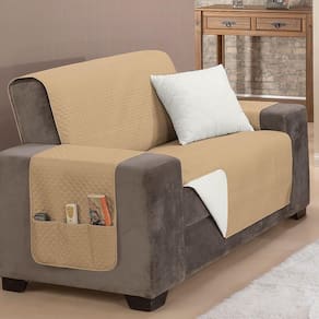 A capa de sofá é cuidadosamente desenvolvida com um material interno que retém líquidos, prevenindo e reduzindo os impactos de possíveis acidentes no seu estofado. Sua versatilidade é evidenciada pelo design que permite o uso dos dois lados, cada um apresentando uma opção de cor distinta, permitindo que você renove o visual do seu ambiente conforme sua preferência.