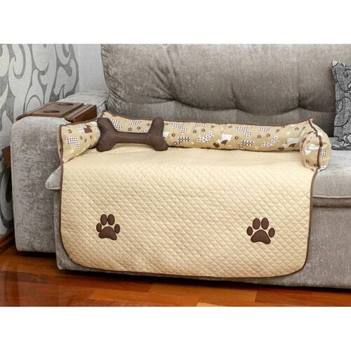 Conteúdo da embalagem 01 protetor de sofá pet 90 cm larg x 80 cm comp x 15 cm alt 01 almofada ossinho tamanho irregular