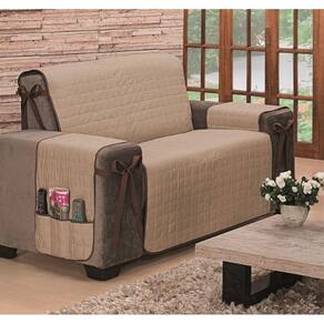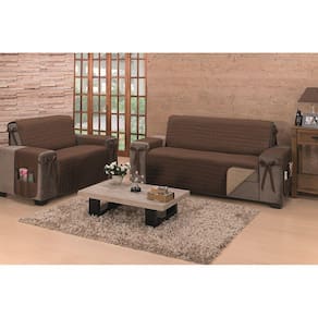 1 Protetor p/ sofá de 2 lugares com medidas: Capa: 1,90m x 1,10m/Braços: 80cm x 40cm (braço do lado direito com porta objetos) Medida total do produto: 2,70m x 1,90m