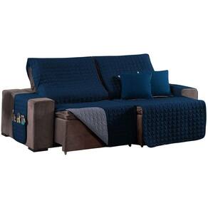 Protetor De Sofá Retrátil Shield Dupla Face 1,80m + Capas De Almofadas - Marinho/cinza