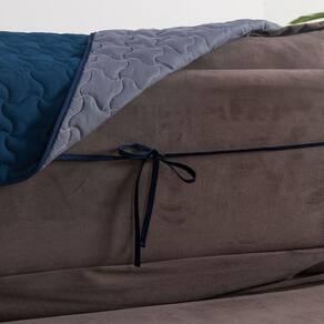 Protetor De Sofá Retrátil Shield Dupla Face 1,80m + Capas De Almofadas - Marinho-cinza