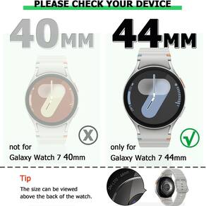 - ?Aplicação?Esta capa de relógio apenas para Samsung Galaxy Watch 7 44 mm (SM-L310). NOTA: Não serve para Samsung Galaxy Watch 7 Ultra de 47 mm, Samsung Galaxy Watch 6, 5 e 4 ou outros. O modelo e o tamanho podem ser vistos acima da parte traseira do relógio.