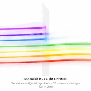 Além da proteção e clareza, este protetor incorpora um filtro de luz azul Eyesafe que bloqueia 40% da luz azul intensa nociva na faixa de 435-440 nm. Esse recurso ajuda a reduzir a fadiga e o cansaço visual durante longos períodos de uso, promovendo hábitos de visualização mais saudáveis.