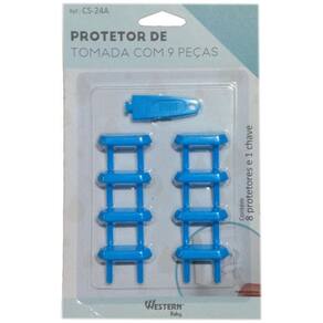 Protetor de tomada bebê segurança contra choque com chave Cor: azul Kit com 8 protetores de tomada e 1 chave