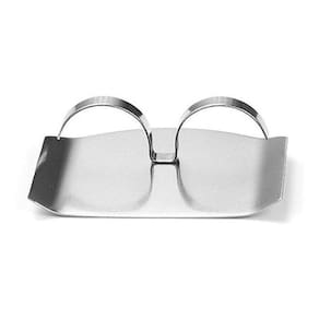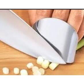 Protetor Dedos Em Aço Inoxidável Feito para ser um escudo e proteger seus dedos quando está usando facas na cozinha. Na hora de cortar temperos, ervas, legumes, carnes, etc., o protetor garante total segurança contra cortes acidentais nos dedos. Utilização: Basta encaixar o protetor em aço inox no dedo médio, ajustando o anel para melhor fixar no seu dedo. A parte côncava fica para baixo, permitindo que você prenda o alimento no arco, e venha com a faca para cortar, protegendo os dedos. Especificação: Dimensões: Comprimento 5,5 cm, largura 7,5 cm Diâmetro do anel: 1,9 cm permite um leve ajuste manual . Material: Aço inoxidável. Espessura da chapa: 0.1 mm. Peso: 28 g. Pode ser levado à maquina de lavar louças. O valor anunciado é para 1 protetor. Ean: 7898545665678