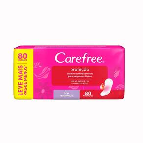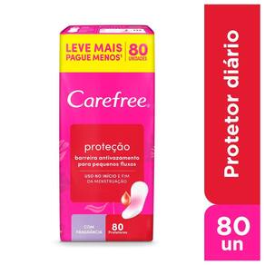 Protetor Diário Carefree Proteção com fragrância 80 Unidades Leve Mais Por Menos Carefree Proteção é perfeito para o comecinho e finalzinho da menstruação. Sua película protetora retém leves fluxos e