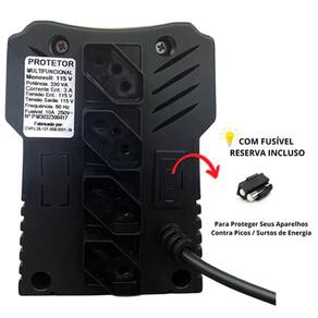 Sua função é proteger os equipamentos dos problemas oriundos da rede elétrica, fornecendo sempre energia limpa de interferência, proporcionando maior vida útil aos produtos a ele conectados. Este Protetor é indicado para: Computadores Gamers, Geladeira, TV, Frigobar, PDVs, leitores ópticos, informática, impressoras a tinta, produtos eletroeletrônicos, áudio, vídeo, som, telecomunicação, fax, PABX. O Protetor dispõe proteção contra choques elétricos, curto circuito, sobre corrente e surtos de tensão, além de proteger contra descargas atmosféricas. O Protetor não possui a função de estabilizar a rede elétrica