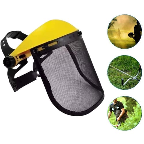 Proteja-se de partículas, pedras e detritos durante o uso da roçadeira com este protetor facial telado.