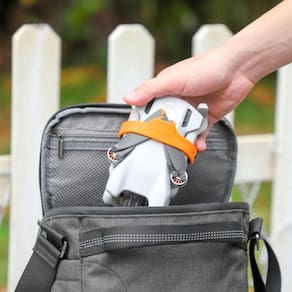 Esse protetor e trava de hélices ajuda a proteger e imobilizar as hélices do seu drone quando ele não estiver em uso e você estiver em movimento. Além disso, ele possui uma tampa de plástico para a parte inferior do corpo do drone, que funciona como um estabilizador de hélice e protege o sensor do Mini 3 na parte inferior.