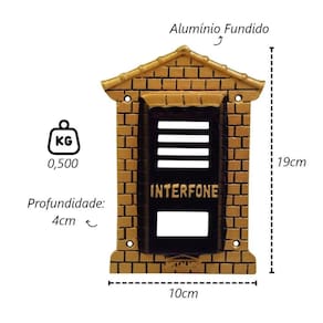 Possui um design aperfeiçoado, na cor ouro, é um ótimo produto para agregar valor em sua obra ou na sua residência. Principalmente na área externa, pode ser utilizado em casas, fábricas, construções, obras, sítios, fazendas, bares e comércios. A função do protetor de interfone é instalar a unidade externa na parede, dentro de um gabinete de proteção. Isso diminui o contato com a chuva, além de reduzir o risco de danos por atos de vandalismo.