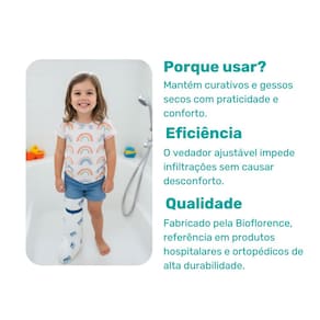 probanho infantil • protetor gesso infantil • capa impermeável perna criança • capa para curativo banho infantil • bioflorence infantil perna • protetor meia perna banho • proteção gesso banho infantil • vedador compressivo infantil
