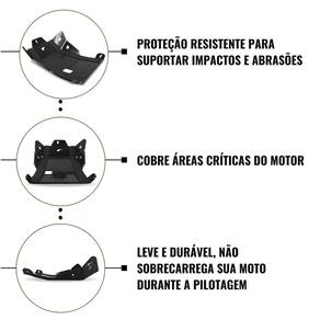 Sua estrutura foi projetada para criar uma capa de segurança em torno do motor, dissipando impactos de pedras, galhos e detritos.