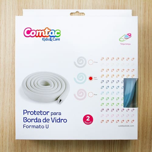 Utilize o Protetor de Borda de Vidro para evitar que as crianças se machuquem seriamente em caso de esbarrão ou tombo, prevenindo cortes ou acidentes mais sérios.É um protetor almofadado flexível com ótima aderência que amortece o impacto de esbarrões em mesas, racks, etc. CARACTERÍSTICAS- Flexível com ótima aderência;- Especialmente desenvolvido para bordas de mesas de vidro;- Confeccionado em formato U;- Fácil instalação;- Não danifica o vidro. COMPOSIÇÃO/MATERIAL- NBR (Borracha nitrilica). COMO INSTALAR- Determine a localização da instalação;- Limpe a superfície deixando-a seca, livre de óleo ou poeira;- Fixe a fita adesiva dupla face na espuma protetora nas duas partes internas;- Após colar, retire a proteção da outra face e pressione para fixar;- O adesivo se fixará totalmente após 24 horas. DIMENSÕES DO PRODUTO (LxP)- 3 x 200 cm. DIMENSÕES (EMBALAGEM COM O PRODUTO) (LxAxP)- 17 x 17 x 5,8 cm. PESO (EMBALAGEM COM O PRODUTO)- 145 g. MODELO DE EMBALAGEM- Caixa com furo para gancho. A EMBALAGEM CONTÉM- 1 Protetor para Borda de Vidro Formato U;- 1 Rolo de fita adesiva dupla face.