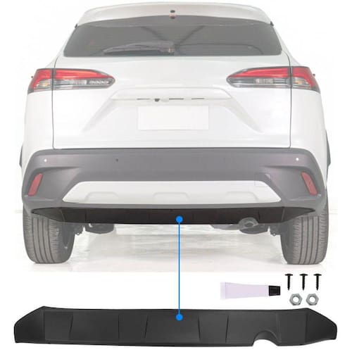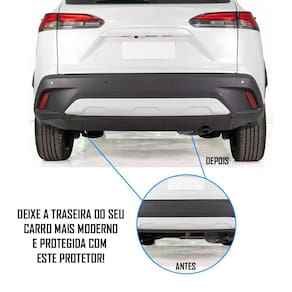 Protetor Para-Choque Traseiro Corolla Cross 2021 Em Diante Preto Tg Poli DESCRIÇÃO:O Protetor Traseiro é um acessório instalado no para-choque traseiro do seu Corolla Cross 2021 em diante, tendo como objetivo proteger o para-choque de pequenos impactos causados por pedra ou lama, mantendo a integridade do veículo.Além de proteger o veículo, o protetor transmite um visual mais robusto e agressivo sem abrir mão da elegância.Fabricado em Polipropileno PP injetado com pintura na cor preto fosco, é um material leve e resistente ao clima, possuindo uma alta durabilidade e um excelente acabamento.ESPECIFICAÇÕES TÉCNICAS:- Material: Polipropileno PP ;- Disponível somente na Cor PRETO Preto Fosco ;- Pode Ser Pintado na Cor do Veículo Não Realizamos a Pintura ;- Instalação: Fita dupla face e parafusos;- Fácil instalação;- Modelo traseiro;- Ótimo Acabamento. COMPATÍVEL COM:- Corolla CROSS 2021- Corolla CROSS 2022- Corolla CROSS 2023