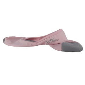 Com elástico sobre o colo do pé, costurado em ambas as pontas.