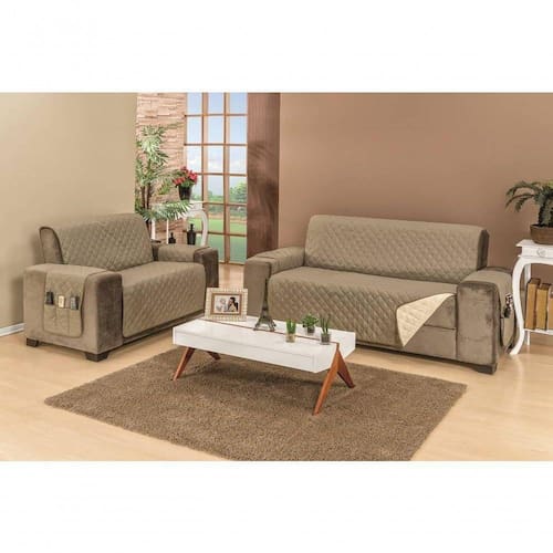 Confeccionado com tecido superior e inferior 100% microfibra, enchimento em 100% poliéster e com acabamento em viés, agora a qualidade e o conforto do seu sofá estão garantidos. Matelado em formato de losangos, tamanho 5x5, o tecido do seu protetor fica mais firme, trazendo sofisticação, beleza e conforto ao seu sofá. Além disso, outra grande vantagem deste lindo protetor é que ele é dois em um, pois ele possui dupla face e pode ser dos dois lados, com cada lado de uma cor, para você poder variar ainda mais o visual do seu ambiente, sempre que quiser. Cada protetor possui porta objetos em um dos braços do sofá, podendo ser utilizado nas duas faces. Além disso, o protetor garante alta proteção ao seu sofá, conservando-o muito mais, por um tempo prolongado.