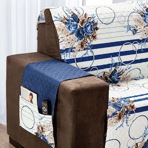 Protetor Sofa Estampado Isabela 2 E 3 Lugares - Floral Azul Marinho