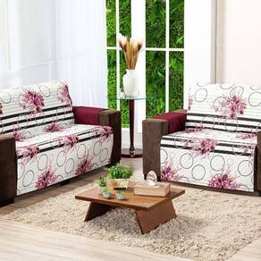 Protetor Sofa Estampado Isabela 2 E 3 Lugares - Floral Vinho