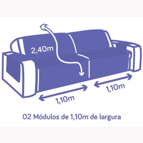 Contém na embalagem: 2 partes para assento de 1,10m larg x 2,40m alt - ideal para sofás 2,20m de medida total de assentos - braços: 90cm larg x 50cm alt
