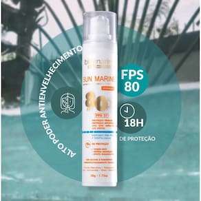 O Protetor Solar Sun Marine FPS80 da Biomarine oferece alta proteção solar associada a ativos antienvelhecimento. Ajuda a prevenir os sinais de envelhecimento precoce e mantém a pele hidratada. Possui textura leve, oil free e rápida absorção. Ideal para uso diário em todos os tipos de pele. Deixa a pele protegida, macia e com toque suave.