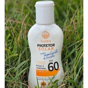 Protetor Solar com Repelente Fps 60 Baíra 120 ml Protetor Solar com Repelente Baíra 120ml Enriquecido com Vitamina E Resistente a água/suor Facial e Corporal Dermatologicamente testado Produto Hipoalergênico Fps 60 O protetor Solar Baíra com repelente de insetos, repele a ação de mosquitos como Aedes Aegypti transmissor da dengue , Anopheles p. transmissor da malária e Culex quinquefaciatus transmissor da filariose . Protege a pele dos efeitos nocivos da radiação UVA e UVB. O protetor Solar Baíra com repelente é indicado para o uso onde há exposição ao ataque de insetos ou radiações ultravioletas. Marca: Não Informado