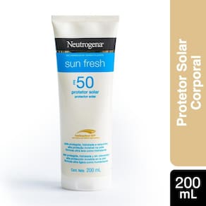 O Protetor Solar Corporal NEUTROGENA SUN FRESH FPS 50, 200mL de textura ultraleve, antioxidante, que deixa a pele hidratada, fresca e sequinha. É de rápida absorção, fácil de aplicar e possui tecnologia HELIOPLEX que proporciona alta proteção contra os raios UVA e UVB, além de prevenir o envelhecimento e as manchas causadas pelo sol e ser muito resistente à água e ao suor