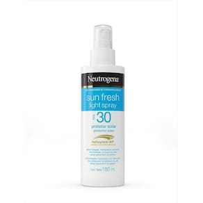 Protetor Solar Corporal Spray NEUTROGENA SUN FRESH FPS 30, 180mL, possui textura leve, desliza na pele, possui toque seco com absorção instantânea e é de fácil e rápida aplicação. Previne fotoenvelhecimento e manchas causadas pelo sol, além de hidratar o dia todo, ser oil free, muito resistente à água e ao suor e não deixa resíduo branco na pele.