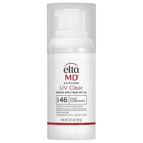 EltaMD Protetor solar facial transparente UV FPS 46, protetor solar sem óleo com óxido de zinco, protetor solar recomendado por dermatologistas, 14,2 g - EltaMD O protetor solar UV Clear Face é um protetor solar leve e livre de óleo feito com óxido de zinco transparente que não deixa gesso branco após a aplicação e ajuda a bloquear os raios UVA e UVB prejudiciais do sol - O protetor solar facial recomendado por dermatologistas para peles propensas a acne é livre de óleo, protege contra erupções e é um protetor solar essencial para pessoas com problemas de cuidados com a pele propensa a acne e outros tipos de pele sensíveis, como rosácea e hiperpigmentação - Este protetor solar facial para peles sensíveis contém óxido de zinco, niacinamida, ácido hialurônico e um antioxidante para promover a aparência de uma pele saudável e reduzir a secura e vermelhidão da pele