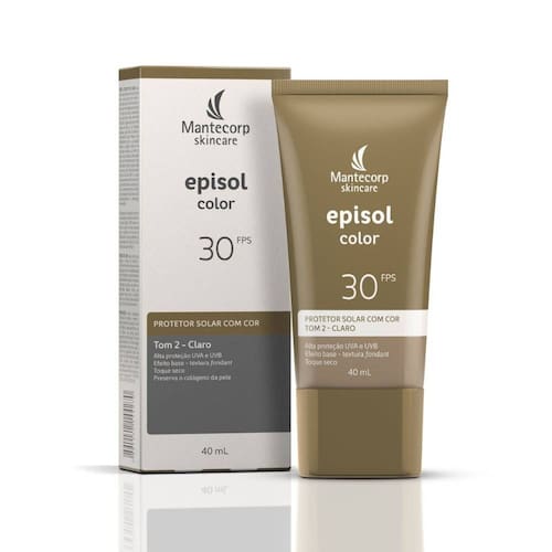 PROTETOR SOLAR EPISOL COLOR PELE CLARA FPS 30 LOÇÃO COM EFEITO DE BASE Episol Color é uma linha de proteção solar com cor que promove cobertura perfeita e uniforme da pele, com efeito matte e toque se