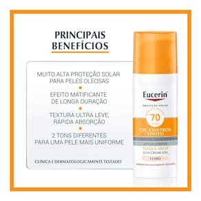 Eucerin Sun Oil Control Tinted Médio FPS 70 é testado e desenvolvido para oferecer proteção solar inovadora com ADVANCED SPECTRAL TECHNOLOGY, sistema de filtros UVA/UVB fotoestáveis.