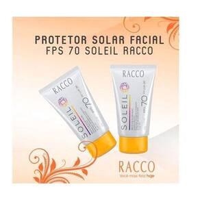 O protetor solar facial fps 70 soleil da racco é para proteger do sol a área mais sensível do corpo, o rosto. Assim como os produtos da linha soleil, é composto a base de café verde e alistin. Assim, combate não só os danos do sol como também a poluição digital.