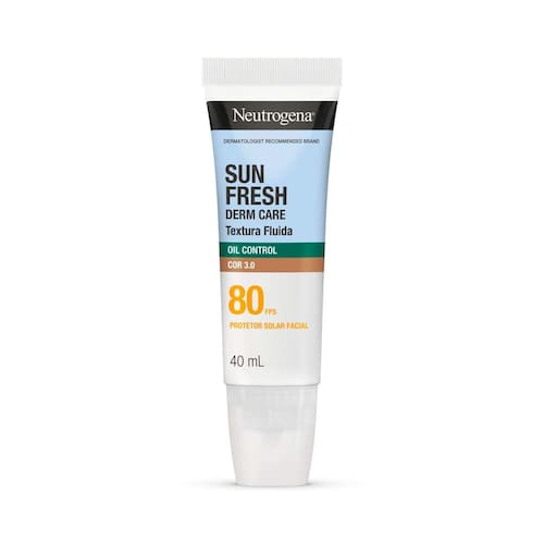 Protetor Solar Facial Neutrogena Sun Fresh Derm Care FPS80 Cor 3.0 Oil Control - 40ml NEUTROGENA SUN FRESH Oil Control Fluido FPS 80 COR 3.0: Indicado para peles oleosas e acneicas, possui textura u