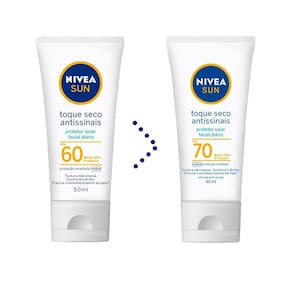 NIVEA SUN Protetor Solar Facial Toque Seco Antissinais FPS 70 é um produto revolucionário no cuidado com a pele. Este protetor solar não é apenas uma barreira contra os raios UVA/UVB, mas também uma defesa poderosa contra o envelhecimento precoce da pele.
