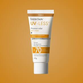 Protetor solar facial theraskin uv-less fps 70 gel creme tom Nome protetor solar facial theraskin uv-less fps 70 gel creme tom 2 40g Titulo protetor solar facial theraskin uv-less fps 70 gel creme tom 2 40g Marca theraskin Cor branco Familia-da-cor branco Tamanho 40 g Ingredient-list uva 30 Material loção Protetor solar facial theraskin uv-less fps 70 gel creme tom 2 40go que é e para que serve o protetor solar facial theraskin fps 70O protetor solar facial theraskin fps 70 é um produto desenvolvido para proteger a pele contra os efeitos nocivos da radiação solar uv. Sua fórmula avançada previne o fotoenvelhecimento, uniformiza o tom da pele e oferece um acabamento com toque seco. Com tecnologia one tone system, adapta-se a diferentes tonalidades de pele brasileira.Benefícios e diferenciais do protetor solar facial theraskin fps 70alta proteção solar com fps 70 e uva 30.Previne os sinais do fotoenvelhecimento da pele.Textura leve, de rápida absorção e acabamento seco.Resistente à água e ao suor.Tecnologia one tone system: uniformização do tom da pele com tons exclusivos para peles brasileiras.Como usar o protetor solar facial theraskin fps 70Aplicar abundantemente sobre a pele do rosto 15 minutos antes da exposição ao sol.Reaplicar sempre que necessário, especialmente após sudorese intensa, nadar ou secar-se com toalha. Marca: Não Informado Ean: 7897129305320