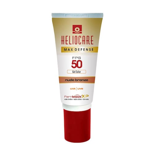 PROTETOR SOLAR HELIOCARE MAX DEFENSE GEL COLOR NUDE BRONZE FPS 50 GEL CREME COM EFEITO DE BASE Fotoproteção com base para pele morena. Heliocare Max Defense é um fotoprotetor com cor de uso diário ind