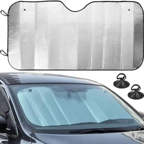 Protetor Solar Metálico Para-brisas Para Carros Protetor Solar Metálico Para-Brisas Para Carros Solução ideal para quem deseja proteger o interior do carro contra o calor excessivo e os danos causados pelos raios UV. Fabricado com material metalizado de alta resistência, ele reflete a luz solar, ajudando a reduzir a temperatura interna do veículo e evitando o desbotamento e o desgaste de estofados, painel e volante. A proteção anti-UV proporciona uma barreira eficaz contra os raios solares, preservando a qualidade do interior do carro e proporcionando maior conforto durante o ao veículo em dias quentes. Seu design dobrável torna o produto altamente prático, permitindo que você o guarde de forma compacta quando não estiver em uso, ocupando pouco espaço no porta-luvas ou porta-malas, o protetor conta com 2 ventosas inclusas, garantindo uma fixação segura no para-brisa. A instalação é simples e rápida: basta fixar as ventosas na parte interna do vidro e ajustar o protetor conforme necessário, oferecendo praticidade e eficiência na proteção do seu carro.
