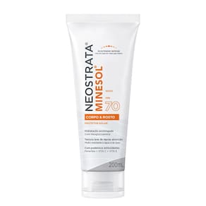 Protetor Solar Minesol NeoStrata Corpo e Rosto FPS 70 200ml Protetor solar facial e corporal com Vitamina C, Vitamina E e Feverfew, combate os sinais de envelhecimento e acelera a renovação celular co