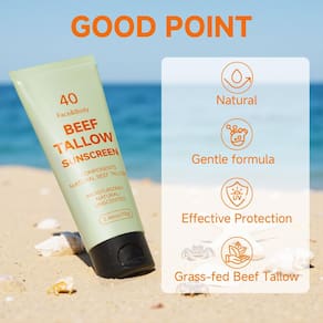 - ?Fórmula natural e rica em nutrientes? Feito com protetor solar de sebo, este protetor solar de viagem aproveita o sebo bovino alimentado com capim para a pele, um emoliente natural repleto de vitaminas A, D e E. Ao contrário de ingredientes sintéticos, o sebo bovino imita os lipídios da pele, garantindo hidratação profunda e compatibilidade para todos os tipos de pele. A fórmula de proteção solar de sebo bovino é minimamente processada, livre de fragrâncias artificiais e protetor solar de sebo ideal para pele reativa, oferecendo uma barreira nutritiva