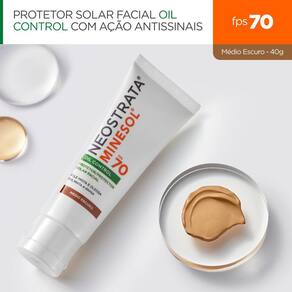Protetor Solar NeoStrata Minesol Oil Control FPS 70 traz poderosos ativos antioxidantes na fórmula e reguladores de oleosidade, para disfarçar poros, evitar acne e brilho excessivo no rosto ao longo do dia. Sua pele fica uniformizada, mais jovem e protegida dos raios UVA/UVB e outros fatores externos.