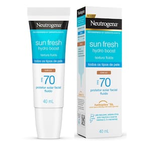 Neutrogena Sun Fresh Hydro Boost FPS 70 Cor 3.0 Pele mais jovem, radiante e firme Ácido hialurônico e boost de vitaminas (C, E e niacinamida) Possui textura fluida para todos os tipos de pele. A exclu
