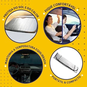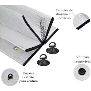 Fácil de instalar e fácil de guardar! Basta fixar as ventosas no vidro do carro. Produto portátil e dobrável para facilitar o armazenamento. Este protetor de para-brisas é eficiente contra os danos que o sol causa em seu carro. Seu tamanho único servirá para qualquer modelo de veículo. O produto evita a claridade e o aquecimento no interior do veículo ocasionada pelo sol.