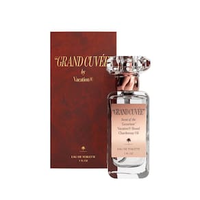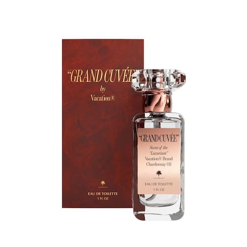 "GRAND CUVÉE" da Vacation é uma fragrância sem gênero que transporta o usuário "bombordo" sobre um iate coberto de madeira de teca ao pôr do sol, sabrando a rolha de uma garrafa dos melhores da província. Rico em notas de argã, âmbar, fava de baunilha, Eau de Vie de pêssego e um toque oceânico de velas lavadas ao sol, é um cerimonioso às coisas boas da vida — meticulosamente trabalhado para aqueles que levam seu lazer a sério.