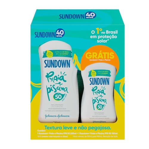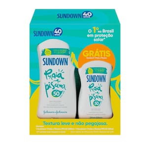 Promopack Protetor Solar SUNDOWN FPS 50 - 200ml Ganhe 100ml Com tripla proteção, ajuda a proteger a pele de elementos agressores como o sol, cloro e a água salgada do mar. Oferece proteção imediata U