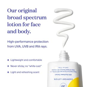 SPF superpotente — Este protetor solar leve e hidratante de amplo espectro absorve os raios UVA (envelhecimento) e UVB (queimação), então sua pele não.