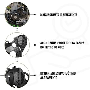 Este protetor oferece uma proteção robusta para as tampas laterais do motor, incluindo a tampa do filtro de óleo, garantindo a integridade dos componentes essenciais da sua moto durante a pilotagem.
