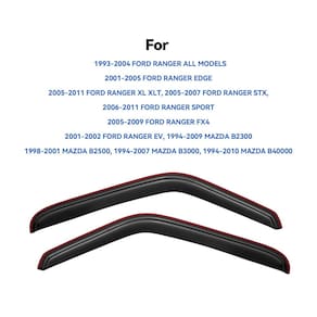 Calha de chuvaYQAUTEC 2 peças de proteção contra chuva com fita adesiva de fumaça escura, defletores de janela lateral, serve para 2 portas, para Ford Ranger 1993-2004 todos os modelos, Ford Ranger Edge 2001-2005, Ford Ranger XL XLT, Ford Ranger STX 2005-2007, Ford Ranger STX, Ford Ranger Sport 2006-2011, 2006-2011, 2006-2011, 2006-2011, 2006 5-2000 9 Ford Ranger FX4, Ford Ranger EV 2001-2002, Mazda B2300 1994-2009, Mazda B2500 1998-2001, Mazda B3000 1994-2007, Mazda B4000 1994-2010 - ?Ajuste perfeito? YQAUTEC 2 peças de protetores de chuva de janela de para-brisas de ventilação adequados para Ford Ranger 1993-2004 todos os modelos, Ford Ranger Edge 2001-2005, Ford Ranger XL XL 2005-2011, Ford Ranger STX 2005-2007, Ford Ranger Sport 2006-2011, 2005-2005, 2005-2007, Ford Ranger Sport 2006-2011, 2005-2005. Ford Ranger FX9 4, Ford Ranger EV 2001-2002, Mazda B2300 1994-2009, Mazda B2500 1998-2001, Mazda B2500 1994-2007, Mazda B3000 1994-2010. - ?Qualidade premium?Feito de material antiestilhaço durável e de alta qualidade, estes protetores de chuva têm ótimo desempenho em testes de resistência a UV e arranhões. E essas fitas graduadas de 17 meses ajudam a grudar firmemente. - ?Totalmente funcional?Você pode aproveitar o ar fresco e manter a chuva caindo depois de instalar a persiana da janela das viseiras de ventilação e manter a janela aberta sem preocupações com neblina. - ?Fácil instalação?Estilo no canal. Sem necessidade de perfuração ou ferragens especiais. Teste o ajuste das viseiras primeiro para garantir que seja o modelo certo antes de colocá-las. [NOTA: Não lave seu carro 24 horas após a instalação.] - ?Garantia e suporte?Garantia de 1 ano. Suporte vitalício. Se você tiver alguma dúvida, avise-nos e responderemos o mais rápido possível.