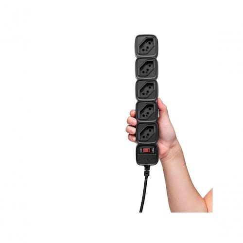Com 5 tomadas 2P + T, pode conectar até 5 aparelhos simultaneamente, sem comprometer a . A potência máxima de operação é de W (127Vac) e W (220 Vac). O cabo de força tem 1 m de comprimento e a temperatura de operação varia de 0 a 40 C. O indicador luminoso de funcionamento da chave liga/desliga tipo disjuntor rearmável completa o pacote de recursos. Aqui vai a descrição do produto: