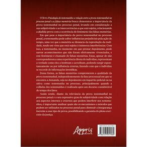 O livro Psicologia do testemunho: a relação entre a prova testemunhal no processo penal e as falsas memórias busca demonstrar a importância da prova testemunhal no processo penal, levando em consideração a sua subjetividade e as intercorrências a que está sujeita, relacionando a aludida prova com a ocorrência do fenômeno das falsas memórias. Em que pese a importância da prova testemunhal no processo penal, a testemunha pode sofrer influências prejudiciais pela ação do tempo, uma vez que a memória se distancia da reprodução da realidade, tendo em vista que está sujeita à inúmeras interferências. Com isso, a testemunha, no momento em que prestar depoimento, pode narrar acontecimentos que não foram efetivamente vivenciados, e este fenômeno é chamado de falsas memórias. Estas, apesar de não corresponderem a uma experiência direta do indivíduo, representam a verdade como eles a lembram e acreditam, podendo surgir espontaneamente ou por influência externa, fazendo com que o indivíduo se recorde de informações inverídicas. Dessa forma, as falsas memórias comprometem a qualidade da prova testemunhal, independentemente da fase processual em que se encontra a demanda, seja no depoimento em inquérito policial ou na oitiva como testemunha no processo, principalmente quando a colheita dos testemunhos é realizada após um decurso considerável de tempo dos fatos. Assim sendo, diante da relevância da prova testemunhal no processo penal e o seu expressivo grau de subjetividade com relação aos aspectos internos e externos que podem interferir nos testemunhos, é importante analisar quais são os mecanismos e métodos que podem ser utilizados no processo penal para diminuir a insegurança inerente a esse tipo de prova, possibilitando a garantia do pleno exercício da justiça.